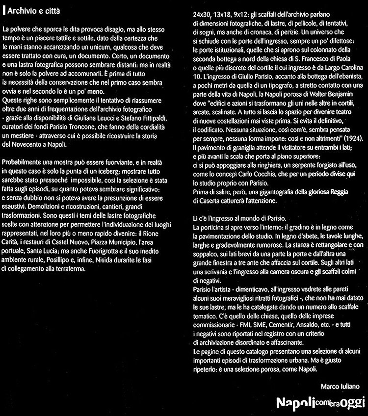 Catalogo: Napoli com’eraoggi – episodi di trasformazione urbana nel XX secolo, ed. Archivio Fotografico Parisio, Napoli 2000